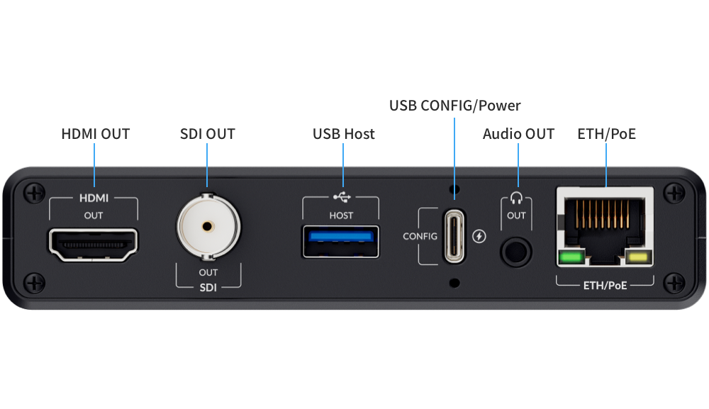Преобразует до четырех IP-потоков в один 4Kp60 HDMI / SDI сигнал